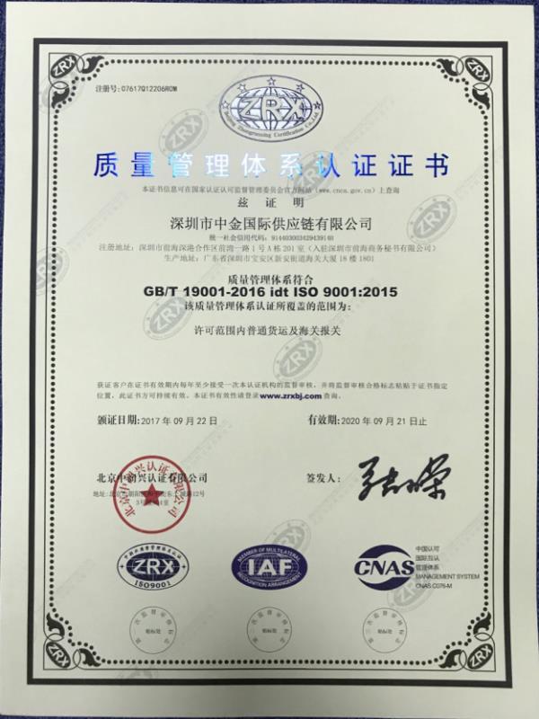 深圳中金國際供應鏈管理有限公司成立于2016年,座落在深圳市寶安區海關大廈。從成立之初起,致力于發展專業的第三方國際、國內物流服務,包括陸、海、空運輸服務,香港倉儲配送服務,中港兩地進出口加工貿易、一般貿易服務,以及專業通關服務等。并根據客戶的實際運作流程和特殊需求,為客戶量身定制高效快捷專業物流解決方案。 實現所有貨物在庫、在途、到廠的實時動態記錄和全程跟蹤管理。建立了以深圳各口岸、香港、廣州等地為分支機構,以先進的供應鏈管理信息系統平臺為基礎,以專業的服務團隊為核心的完善物流及供應鏈服務網絡,極大地提高了客戶的市場運轉能力,有效地協助客戶增加市場份額,提高資金周轉效率和減輕資金壓力。
